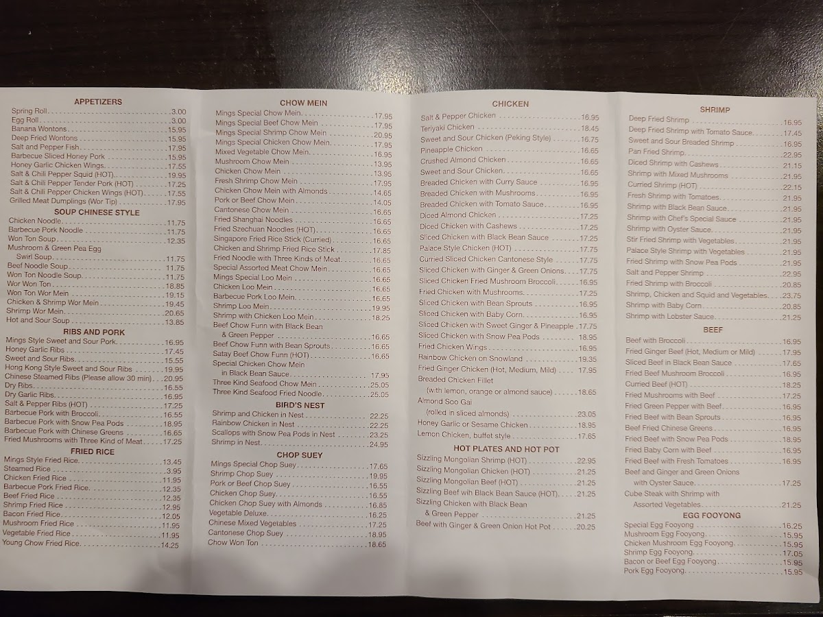 “ What Happend too mings it was great food a couple of years ago had it last night and its just not the same.Next Time ill go into the city for Chinese food ”